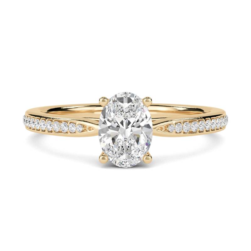 18K Yellow Gold Oval Ice Crushed Engagement Ring