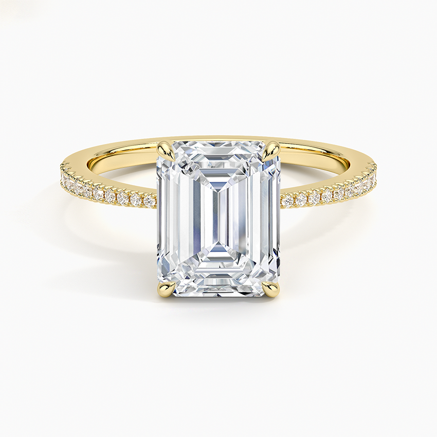 Emerald-Cut Diamond Solitaire Engagement Ring with Pavé Band