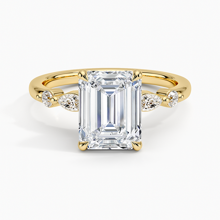 Emerald-Cut Diamond Engagement Ring with Pear & Round Accents