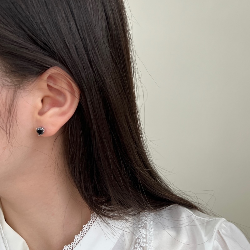 these silver stud earrings feature striking round-cut black stones set in a minimalist three-prong design. The deep black hue adds a modern edge, making them a versatile choice for both men and women.