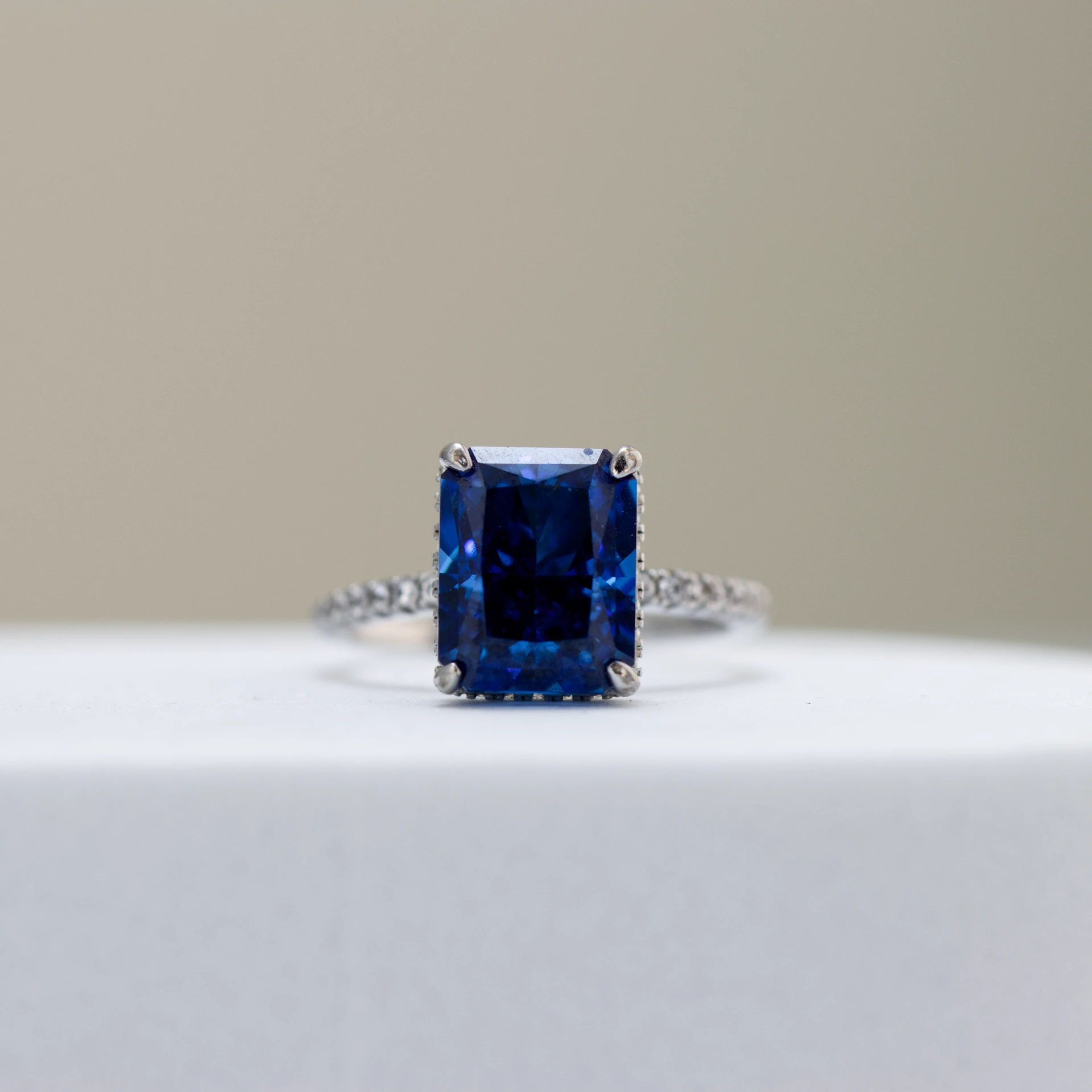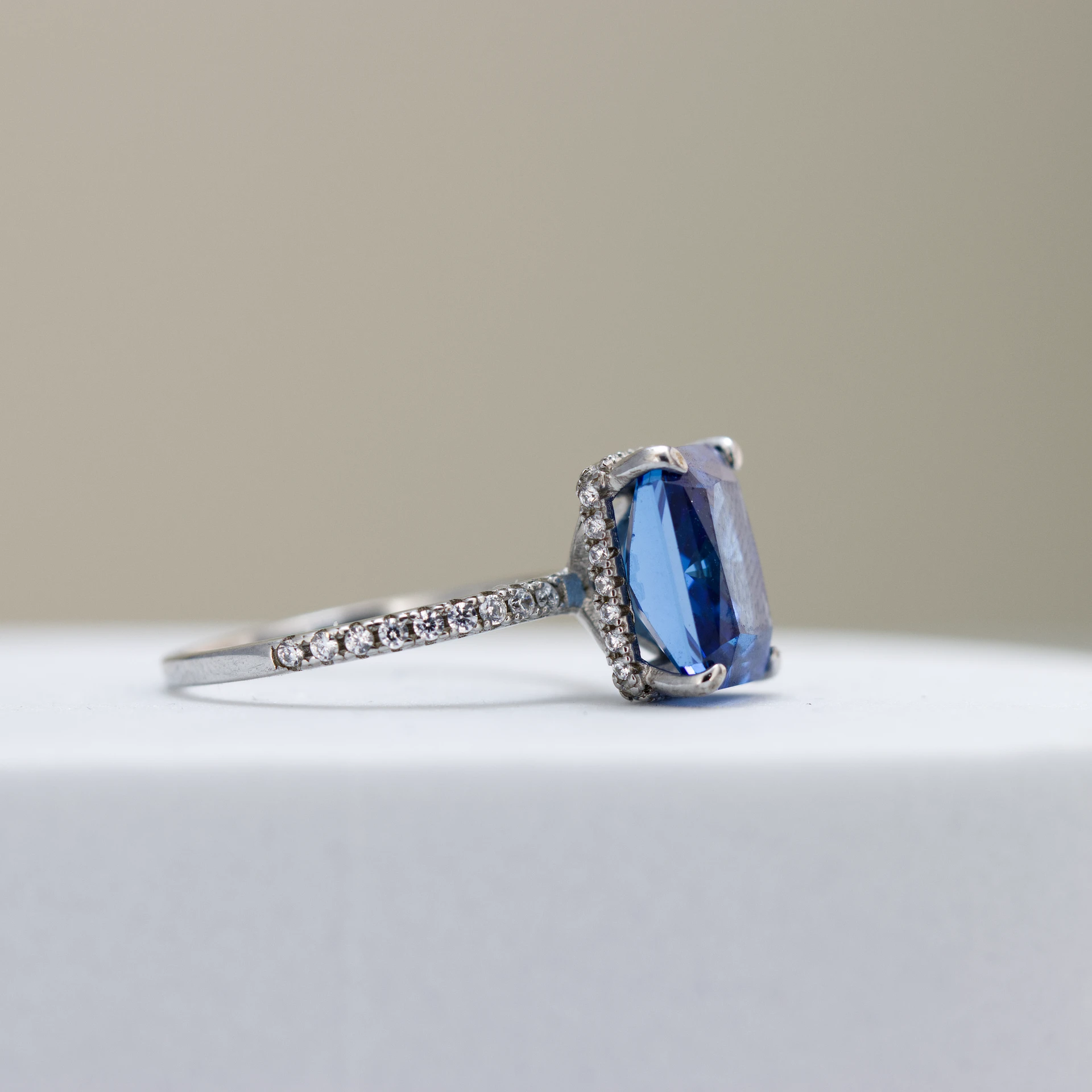Brilliantly modern and effortlessly elegant, this Silver Radiant Blue Ice Crushed Ring features a stunning radiant-cut blue stone that shimmers with a cool, icy glow. The crushed-ice facets catch light from every angle, creating a dazzling play of sparkle and depth. Set in a sleek silver band adorned with micro-stones.